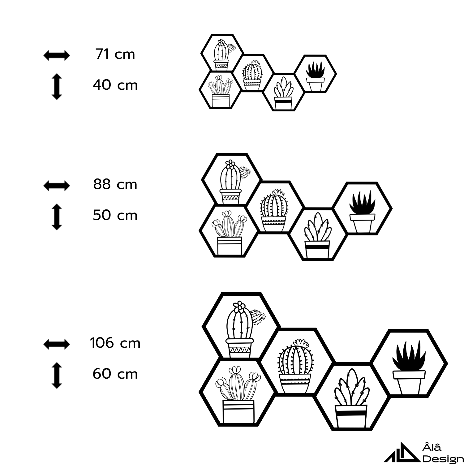 Çeşitli kaktüs ve sukulent motiflerinin kullanıldığı bu tablo, modern dekorasyonlar için şık ve eğlenceli bir dokunuş sunar.