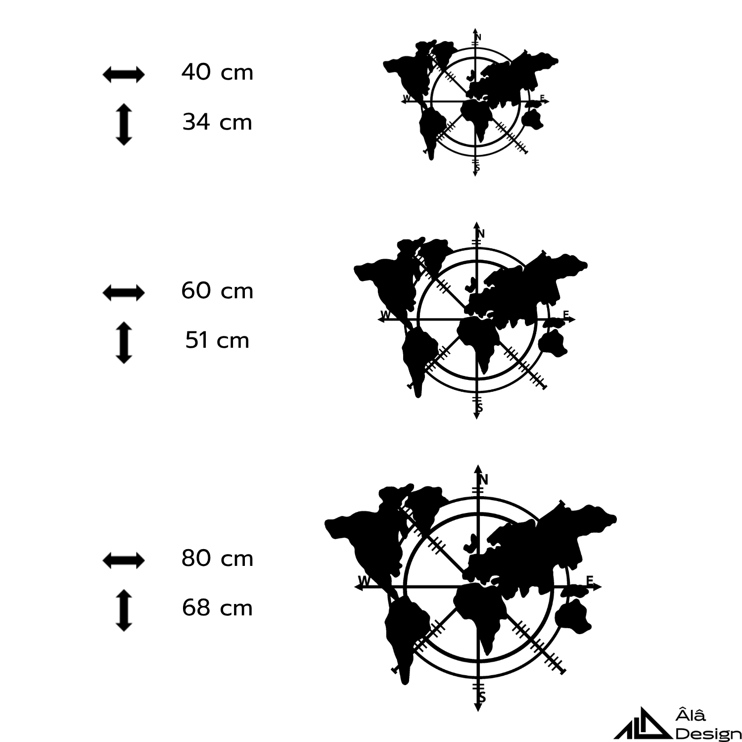 Âlâ Design’ın “Küresel Pusula Temalı Ahşap Duvar Tablosu”, dünya haritası ile pusula formunu birleştirerek yön duygusunu ve özgürlüğü modern bir sanata dönüştürür. Minimal çizgileri ve zarif formu sayesinde duvarınıza hem estetik hem de anlam katar.
